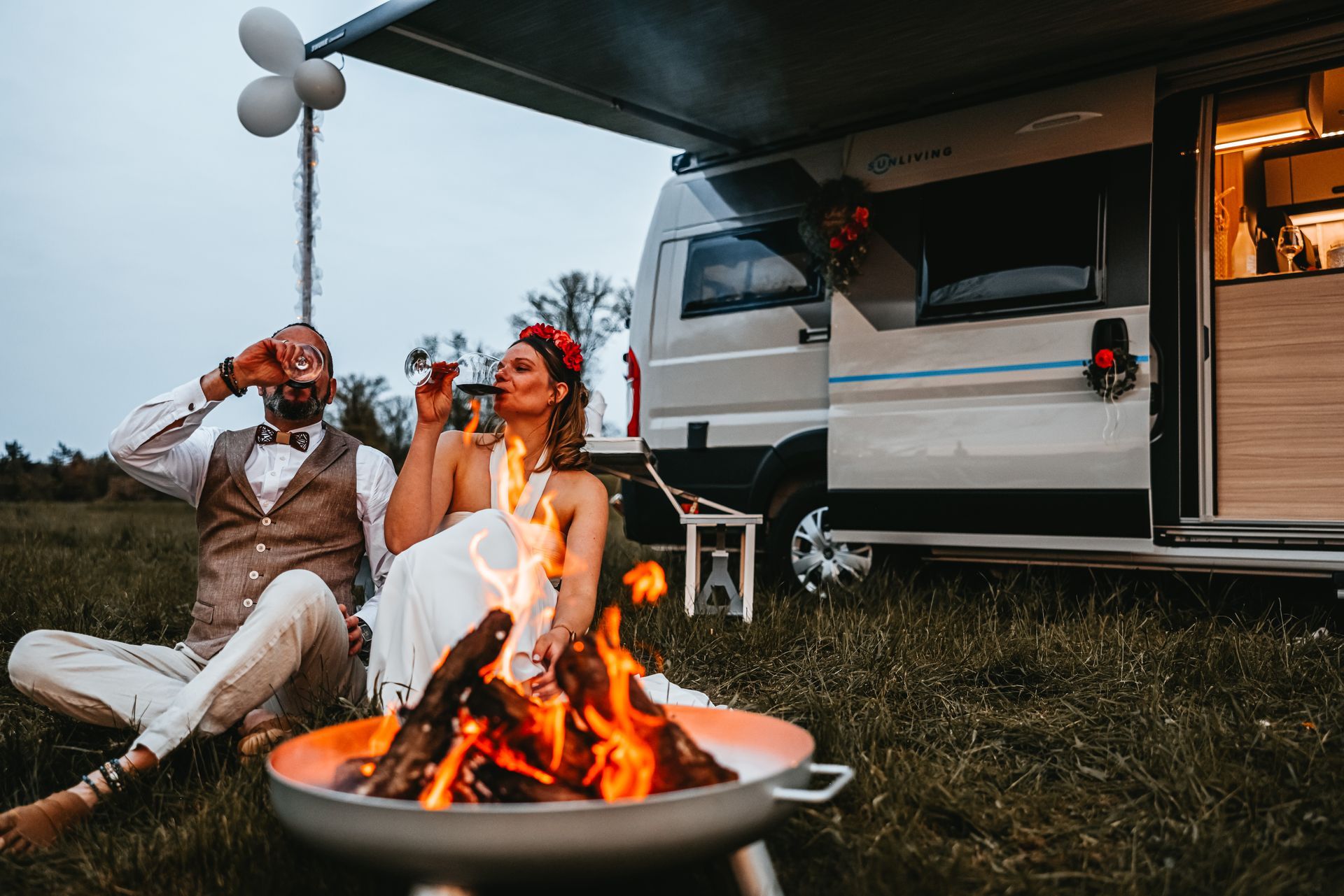 Zur Einrichtung in den Fahrzeugen gehören schon Geschirr und Besteck (4 Personen), Töpfe, Pfanne, sowie auch CEE-Stromkabel, 1 Paar Ausrichtkeile, Gießkanne und und und.